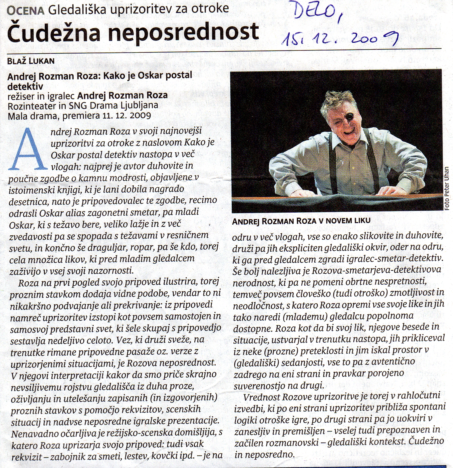 Predstava je narejena po zgodbi iz istoimenske knjige, za katero je Društvo slovenskih pisateljev leta 2008 podelilo Andreju Rozmanu Rozi nagrado Desetnica za najboljšo slovensko mladinsko ali otroško knjigo leta.